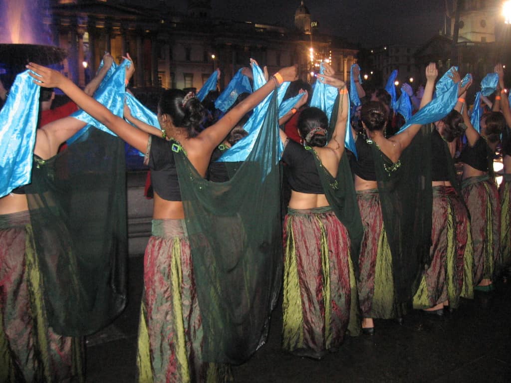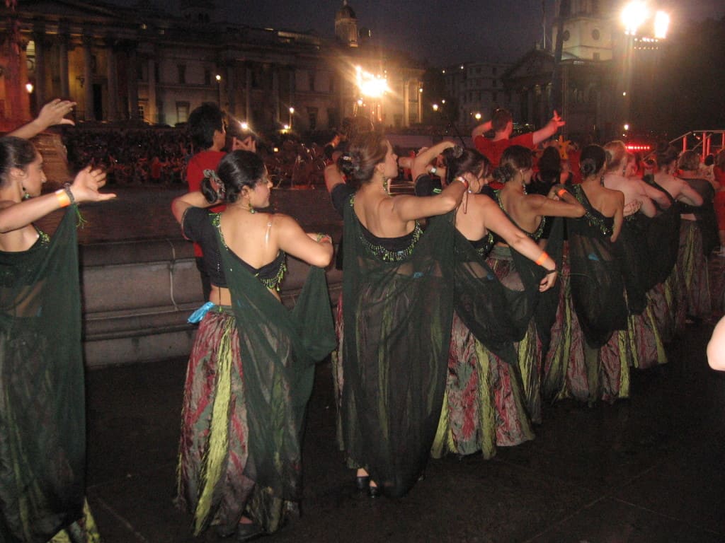 Dancing in the Streets – Apsara Arts/BBC Live Big Dance Show With Apsara Arts. BBC Live Big Dance Show. World record attempt.Performed at Trafalgar Square, London.Choreographer: Malti Patel Costume Designer: Mona Kastell Dancers: Apsara ArtsShare