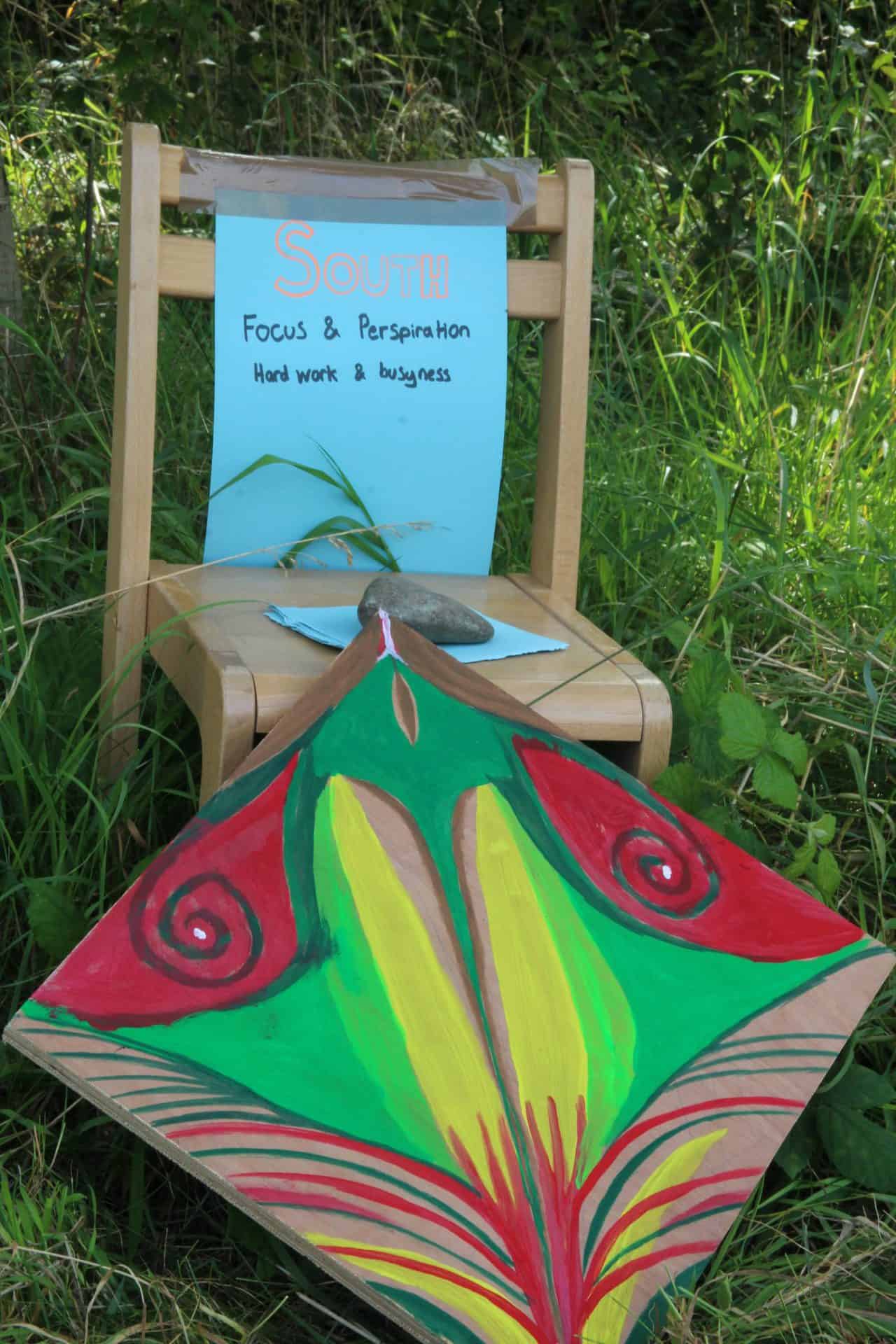 The catalyst for ‘The Compass Rose’ was to co-create an art piece to facilitate Nature connection, community belonging and self-reflection. Part Forest Garden and part installation, I offered more than one way in by setting up the workshop with five different activities, allowing for the space between to explore with place and ourselves