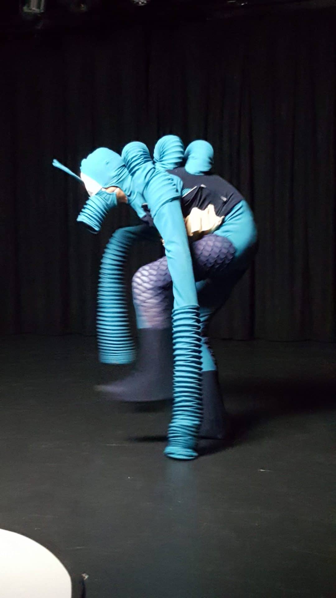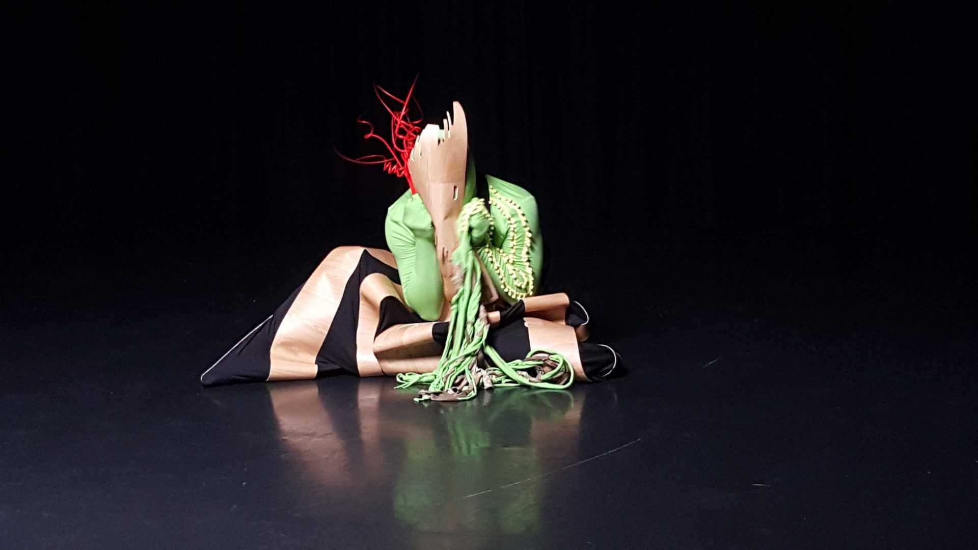 ‘The Faery Trail’ creatures took shape between materiality and the capacity for devising costumes through the performers responsive body in movement, the moving body becoming a design tool. Designed separately, the costumes externalize the performers’ inner creature, visually narrating their own stories and characteristics, yet belonging to the same otherworldly world inspired by Arthur Rackham’s faery tale illustrations. Rethinking our relationship with objects, and what is acceptable as creation, the final costumes show the potential of creating art though not creating waste, from reused found pieces in Mona’s studio, to purchasing pre-loved clothing or natural fibres only fabrics. The chosen pieces and fabrics reflect light through texture, manipulation and colours, in anticipation of the projections.