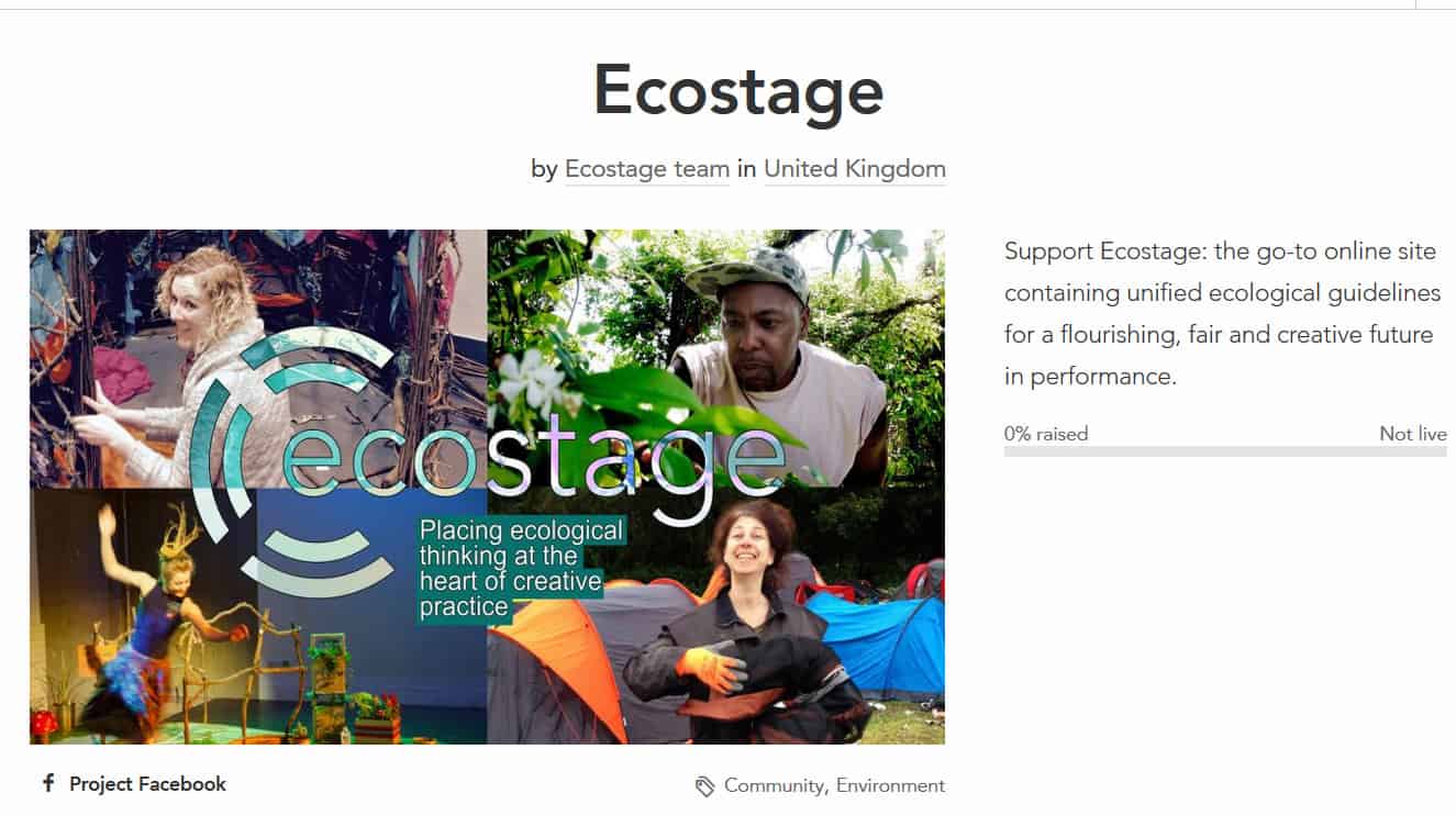 We are currently crowdfunding the revamp of the website for the September 2020 relaunch which is driven by a desire to reduce the environmental impact of stage design and to explore ways in which sustainability can push theatre into exciting, new directions in the ‘new normal’. Ecostage needs to preserve its autonomy as an organization, which is much better achieved through crowdfunding then through grants or sponsorship. As such we are currently crowdfunding
