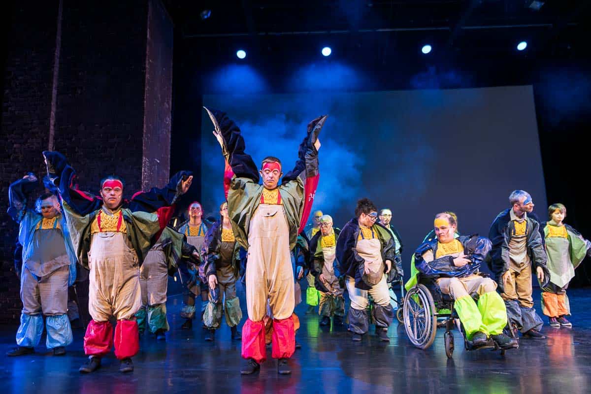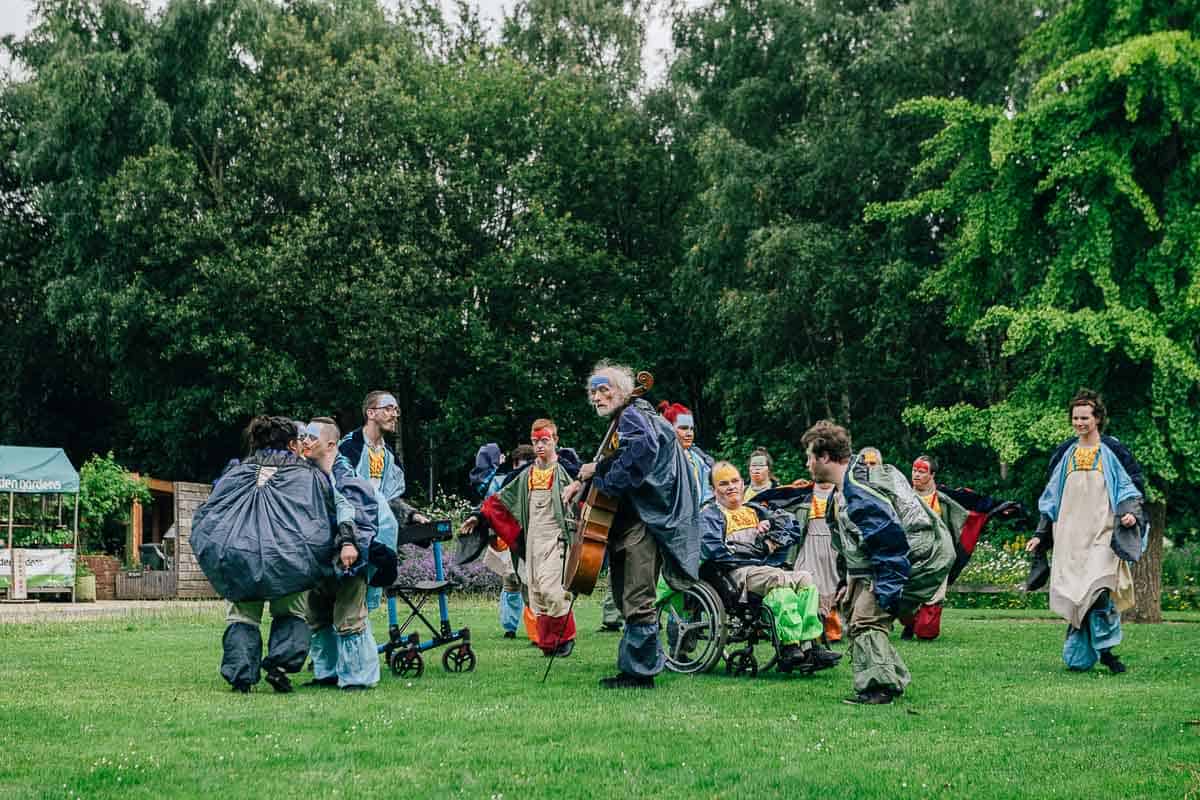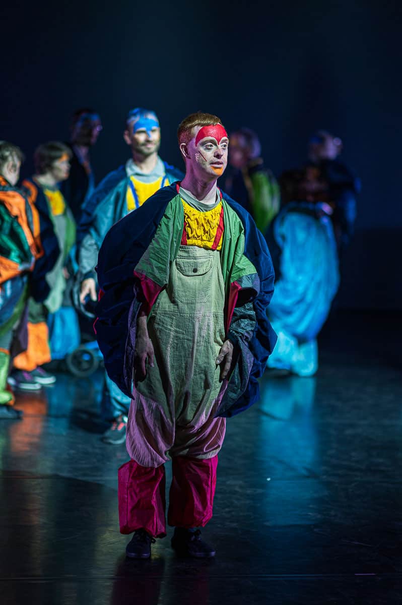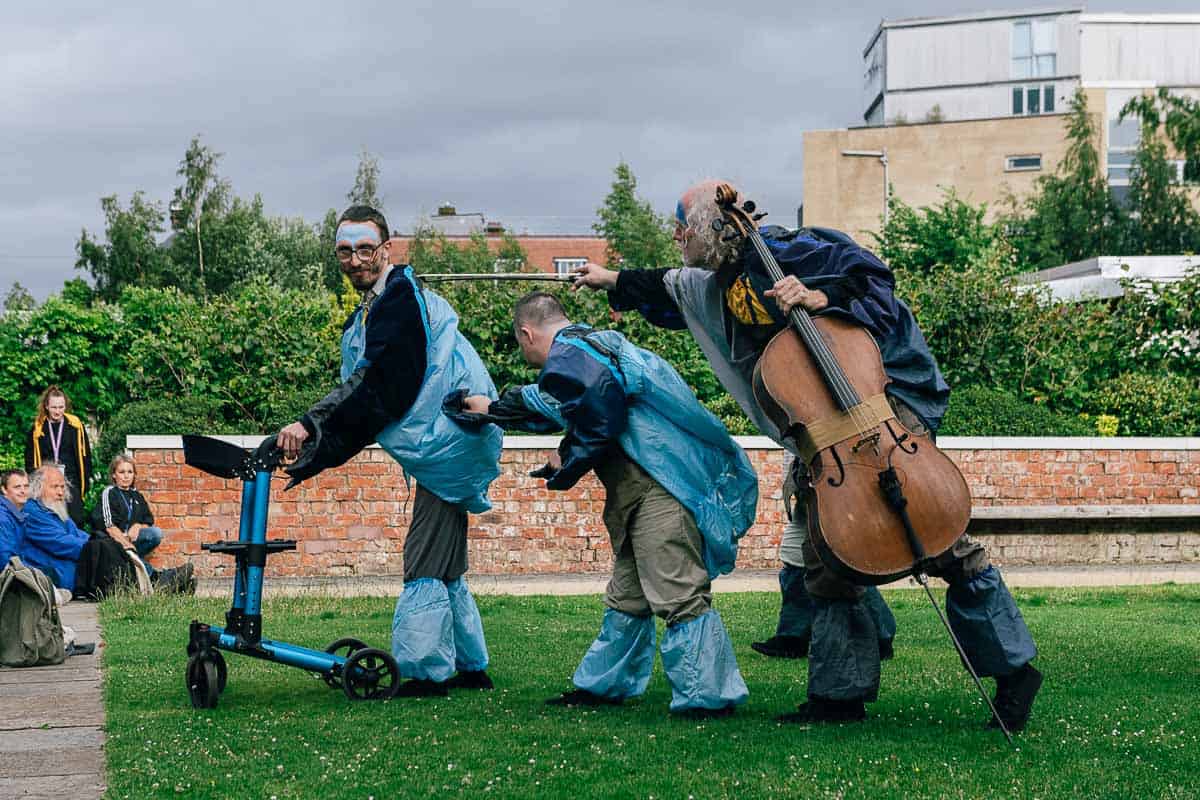 The costumes are designed using charity shop finds and discarded materials such as broken camping tents, airbed mattresses and parachutes to of Antarctica’s cold weather and to create a soundscape when the performers move with the wind. Items were kindly donated by community members reducing the amount of broken item ending up in landfill.